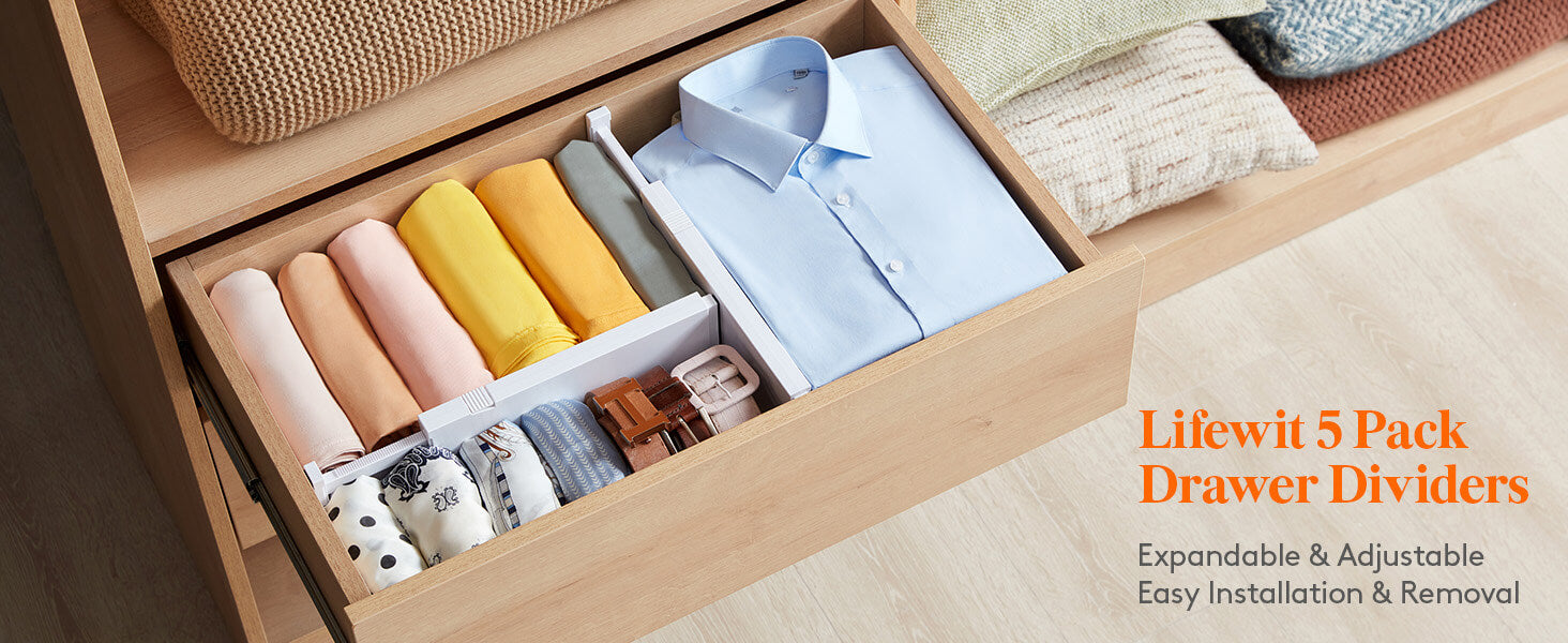 Lifewit Drawer Dividers for Clothes, Plastic Drawer Organizer for Kitchen/Desk/Closet/Silverware