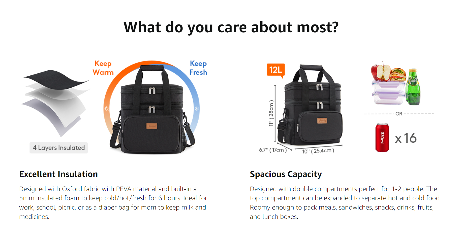 Lifewit Double Deck Insulated Lunch Bag, Soft Cooler Bag