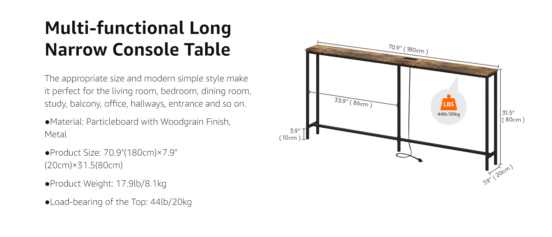Perfect for Tight Spot: This console table is skinny to fit narrow spaces. It provides extra space for decor and easy sweeping underneath.
