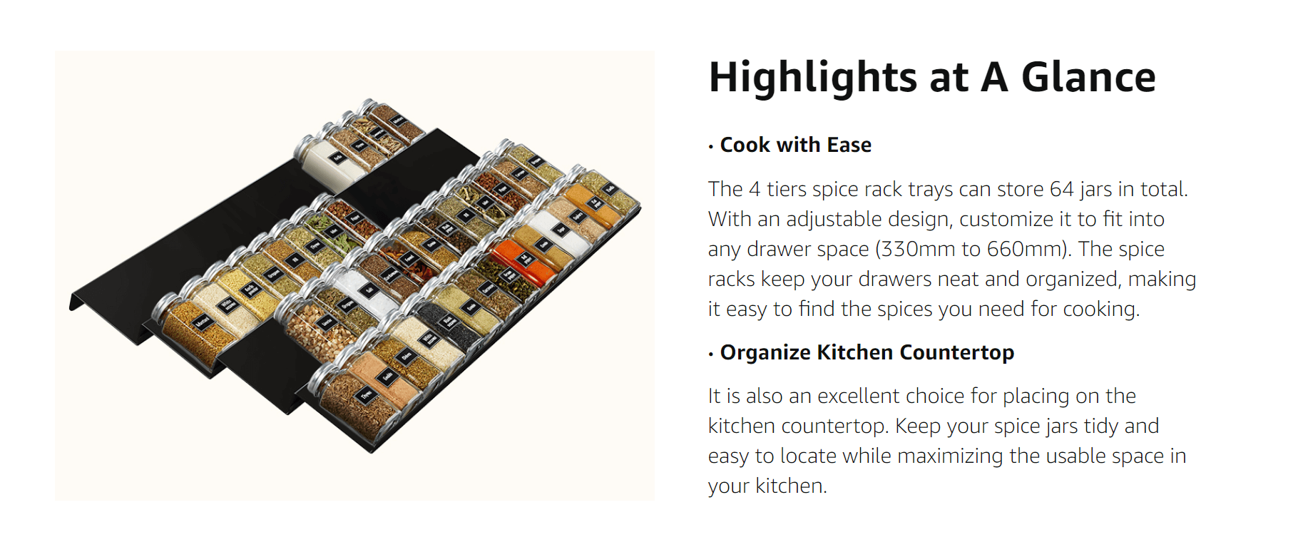 Perfect Size: Fit drawers over 2.8'' high, and spice bottles up to 4'' * 1.8'' in dimensions.