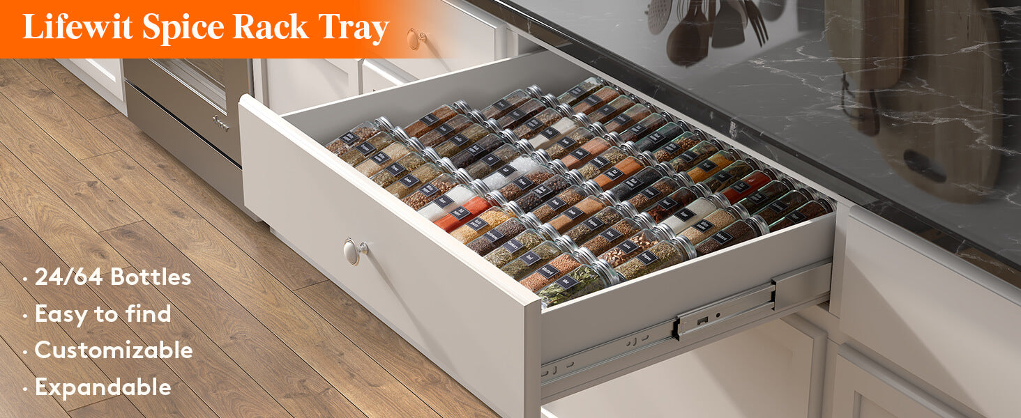 Lifewit Spice Rack, Spice Drawer Organizer Insert for Kitchen